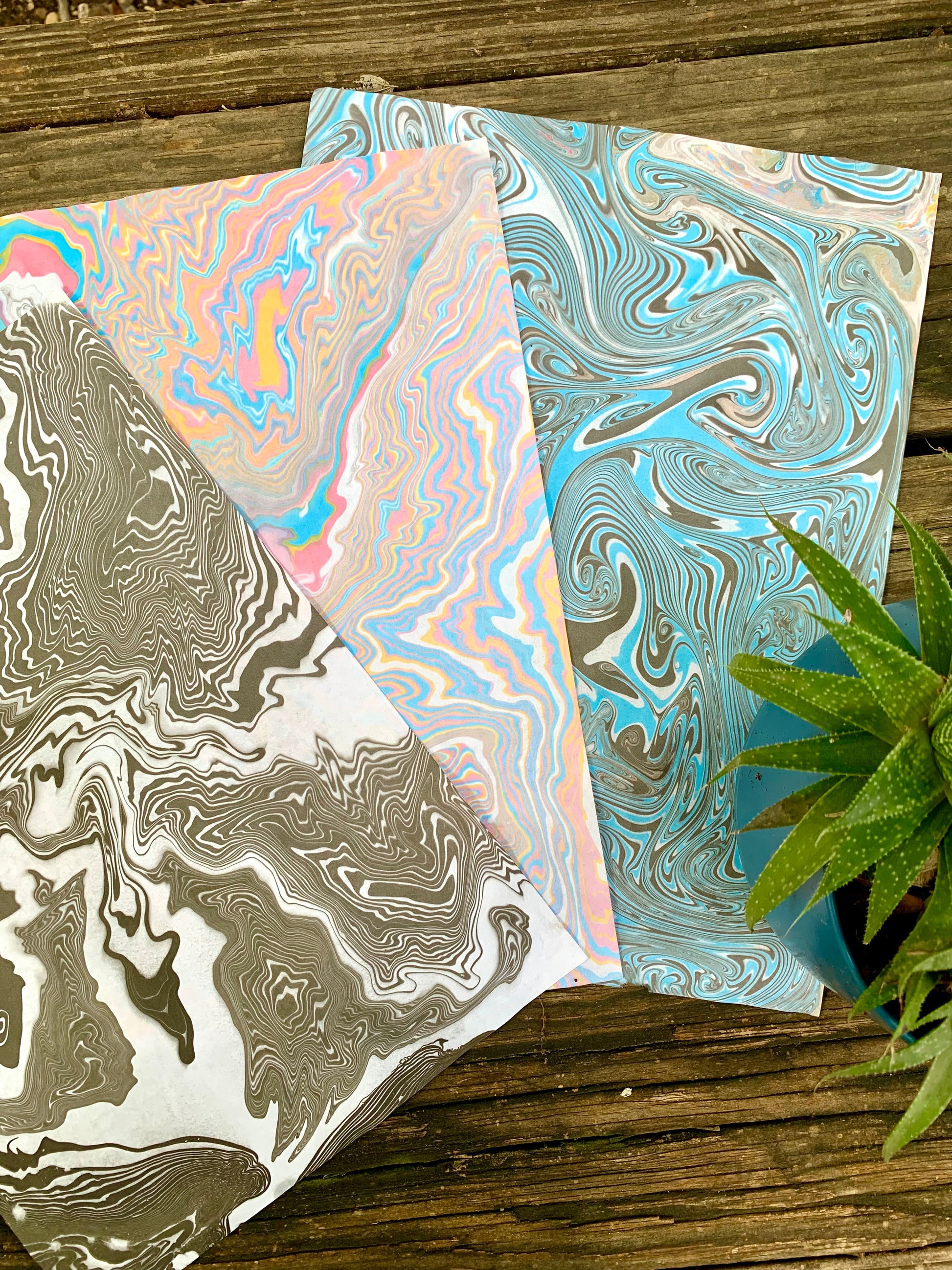 Suminagashi, translated as "floating ink", is an ancient Japanese art form where ink is applied to the surface of water, manipulated to create beautiful patterns, and then transferred to a sheet of paper. During this workshop, Leah will help you to create at least four one-of-a-kind suminagashi art pieces. After learning a number of different marbling techniques, you'll be free to sink into the relaxing flow of marbling. This art form is a beautiful exercise in letting go of expectations and sinking into the present moment.